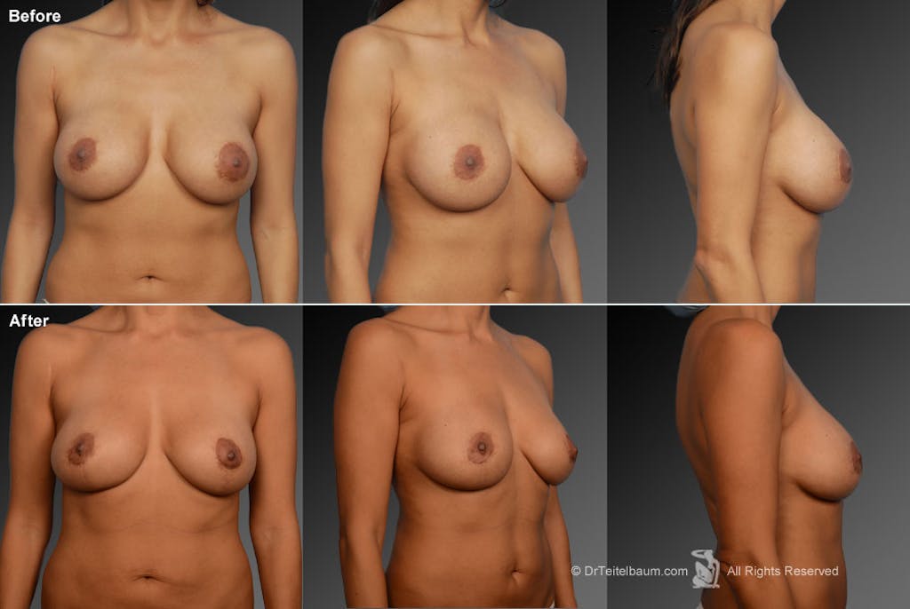 In general, more patients actually want to be revised smaller rather than larger. This finding dispels the myth that patients always wish they had chosen a larger implant size. This desire to reduce the implant size could be because the patient wants a more natural-looking breast, may face discomfort during sports or fitting into fashionable clothes, or even simply wants to accommodate her evolving personal relationships and lifestyle. Whatever the reasoning behind the revision, Dr. Teitelbaum will provide you with an exceptional surgery.