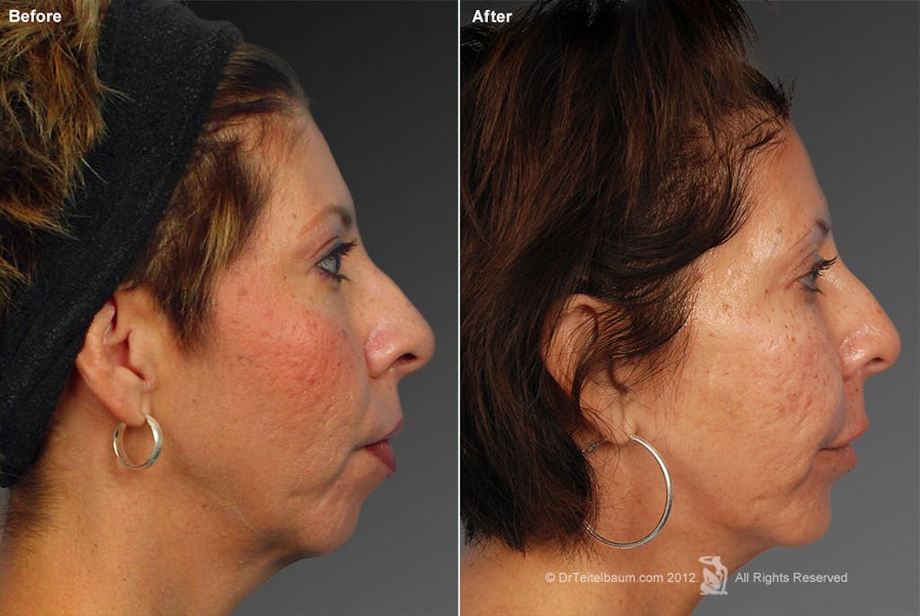 During fat grafting to increase volume in the chin area, fat will first be harvested from a pre-determined area of the body where there is unwanted fat. Once removed, the fat is cleansed and purified. Dr. Teitelbaum then injects the fat precisely into the chin area to provide your desired volume.