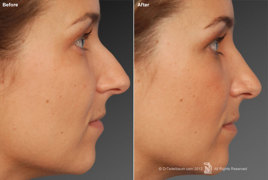 A beautiful nose does not draw attention to itself. It should certainly have a beautiful form. But Dr. Teitelbaum believes the goal of a rhinoplasty is also for the nose not to get noticed. "Nose jobs" all too frequently look obvious, much to the chagrin of conscientious plastic surgeons who deliver natural results to their patients day in and day out.